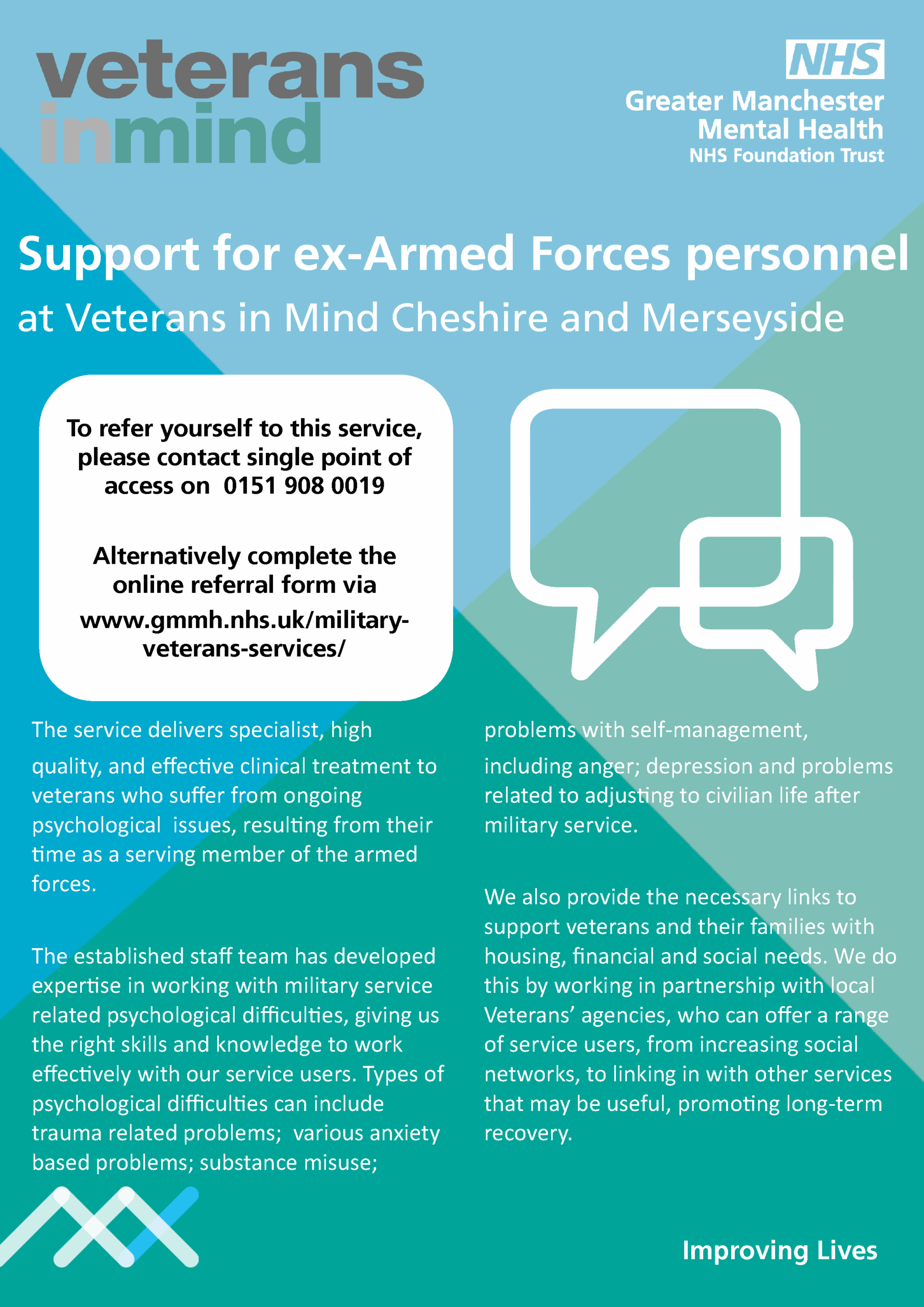 This means that, as part of the health commitments of the armed forces covenant, we have a dedicated clinician who has a specialist knowledge of military related health conditions and veteran specific health services. This is important in helping ex-forces to get the best care and treatment.